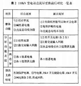 如表2所示为110kV变电站真流l川替换前后比照一览表。替换后的直流体系满足变电站设备对直流体系的要求。
